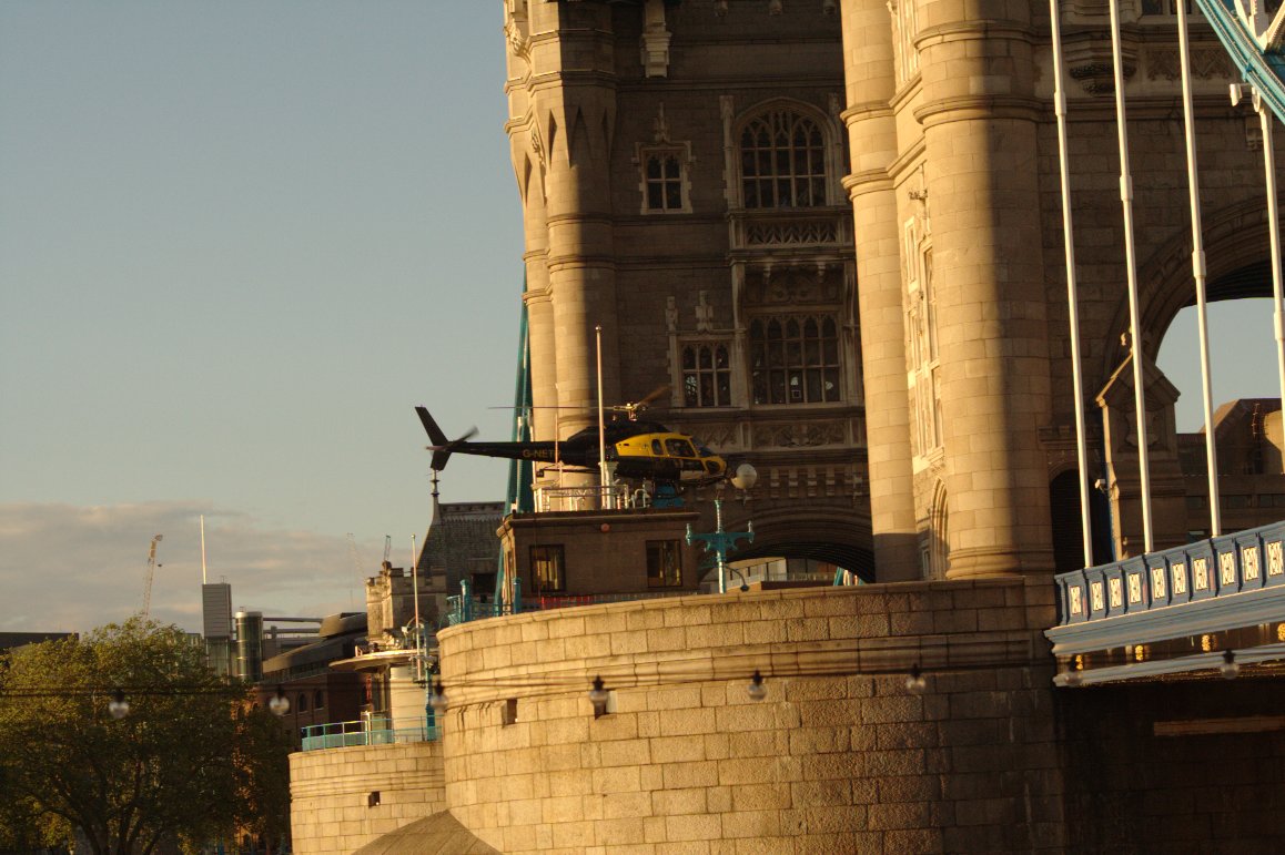 Helicopter flight through Tower Bridge